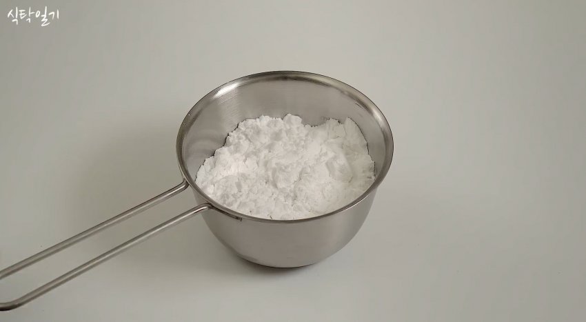Добавляем 50 гр. воды и все взбиваем до однородной массы. Выкладываем в отдельную миску, смешиваем с крахмалом и разрыхлителем, солим. Аккуратно вымешиваем, чтобы не было комочков. Если масса получится слишком жидкой, можно добавить еще немного крахмала.