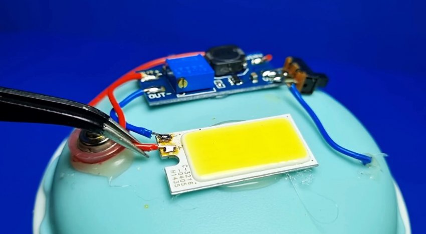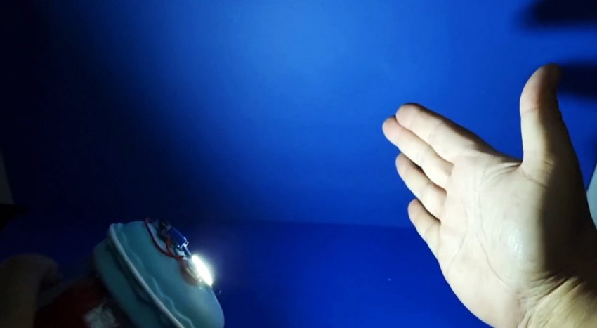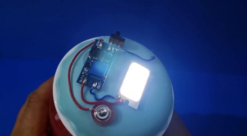 Все готово к испытанию фонаря. Щелкаем переключатель.