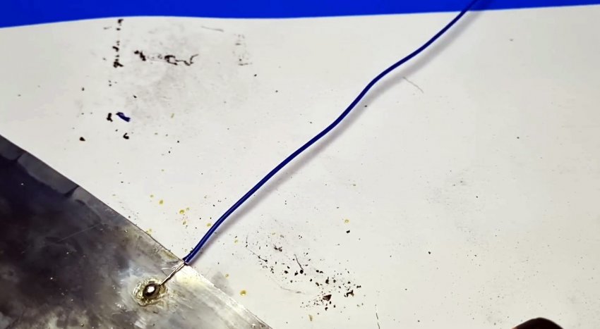 К листу припаиваем провод. Как припаять медь к алюминию без спец флюса смотирте тут - https://sdelaysam-svoimirukami.ru/1380-payaem-alyuminiy.html
