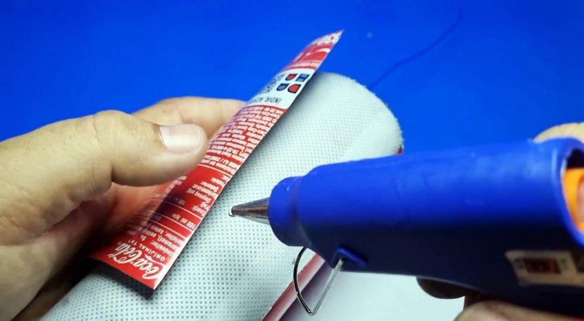 Оборачиваем алюминиевым листом фильтр, фиксируем горячим клеем.