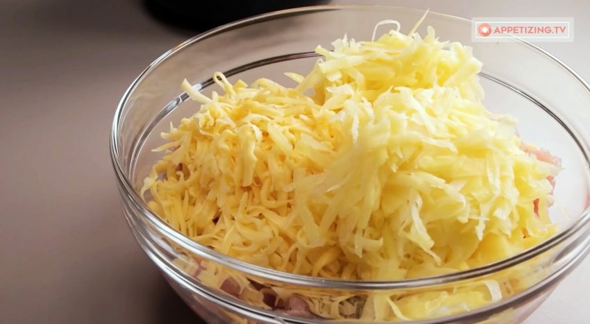 Сыр и картофель натрите на терке, добавьте к ингредиентам.