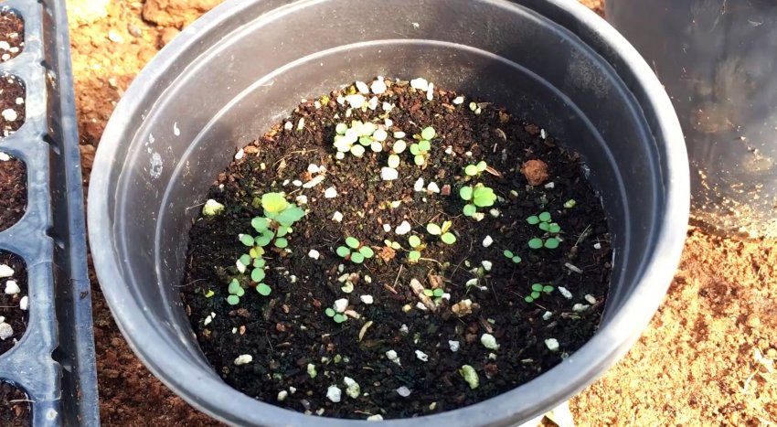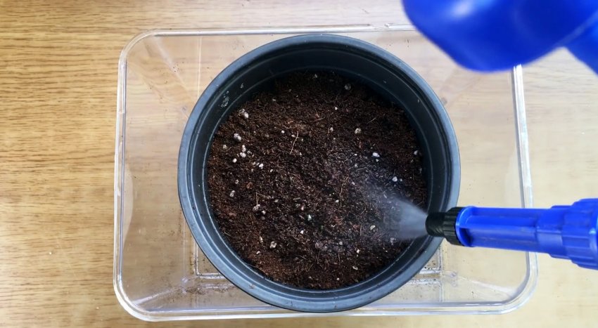 Поставьте горшок в солнечное место и периодически поливайте землю. Она всегда должна быть влажной. Через несколько суток появятся первые ростки.
