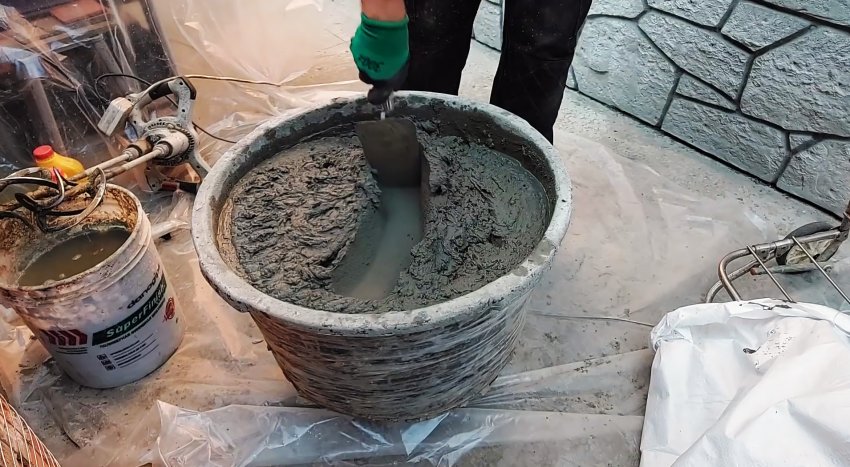 Приготовленный таким образом раствор держит форму слоем до 5 см. Он эластичный подвижный, удобный в работе. Его можно накидывать хоть кельмой, хоть ковшом.