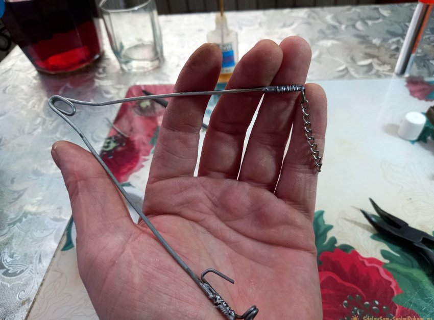Такую же процедуру проворачиваем и с другим концом стальной пружины. Только тут колечко должно быть без крючка.
