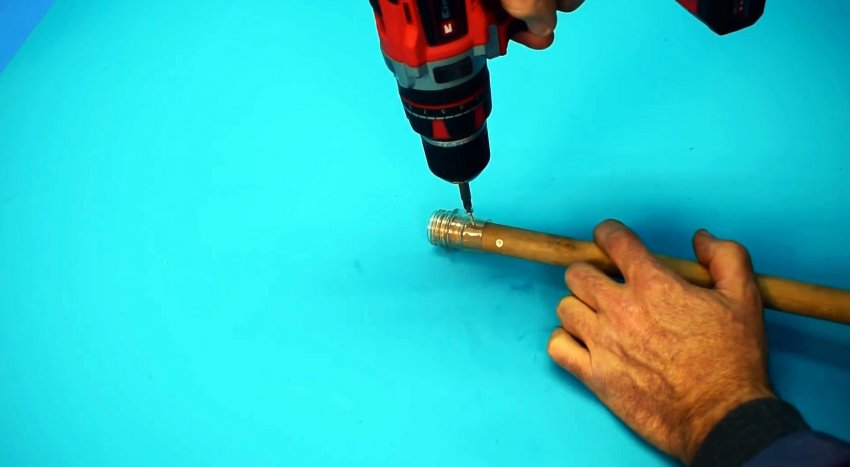 Теперь рукоять можно завернуть в крышку.