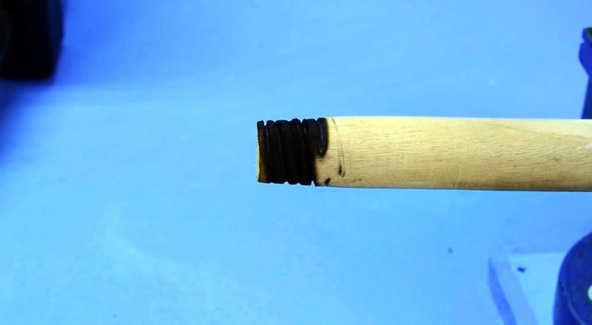 В итоге проволока прожжет древесину, образовав резьбу.