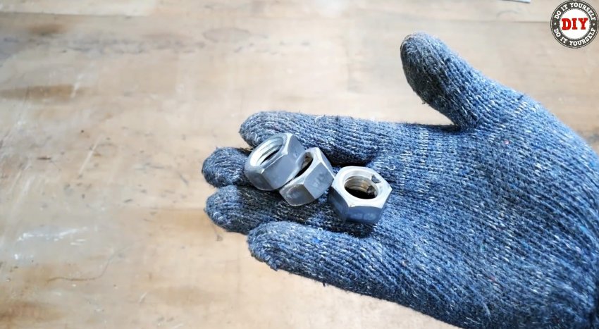 На одной из граней трех стандартных гаек нужного размера отмечаем центры и сверлим радиальные отверстия.