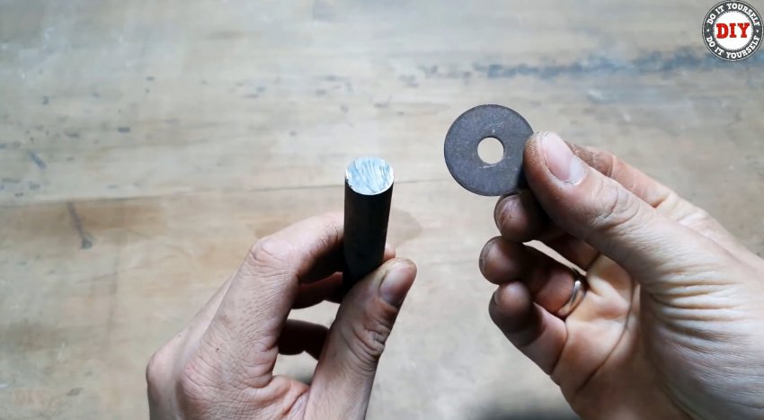 На один торец стержня требуемой длины, свободно входящий в резьбовые отверстия гаек, привариваем шайбу, внешний диаметр которой с запасом больше диаметра стержня.