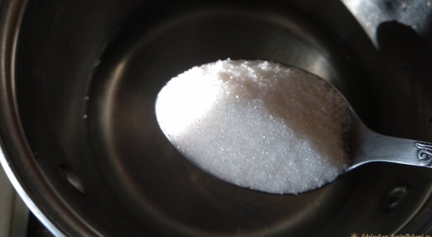 Вода из банки переливается в кастрюлю. Для приготовления сиропа будет использоваться сахар и лимонная кислота.