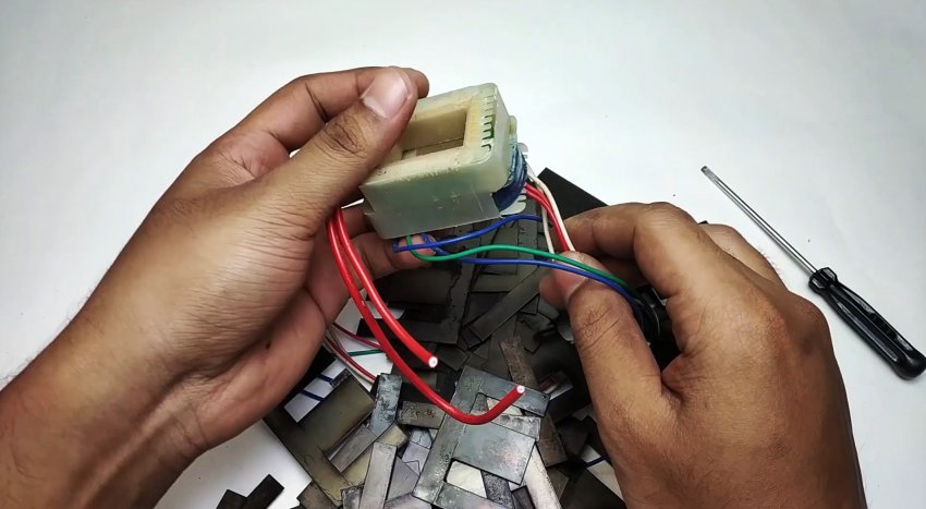 Собираются катушки, на место устанавливаются пластины магнитного сердечника.