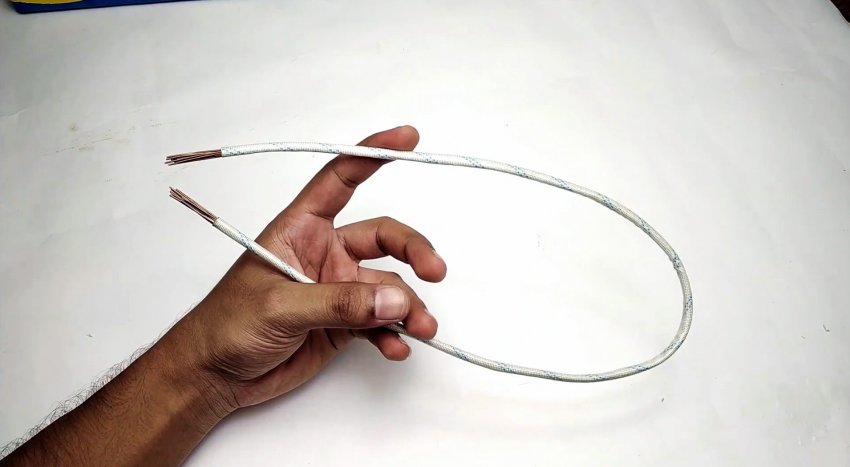 Отрезается 14 жил медного избавленного от изоляции провода длиннее полимерного рукава на 4-5 см. Они вставляются в изоляционный рукав, и тот в три витка наматывается на катушку.