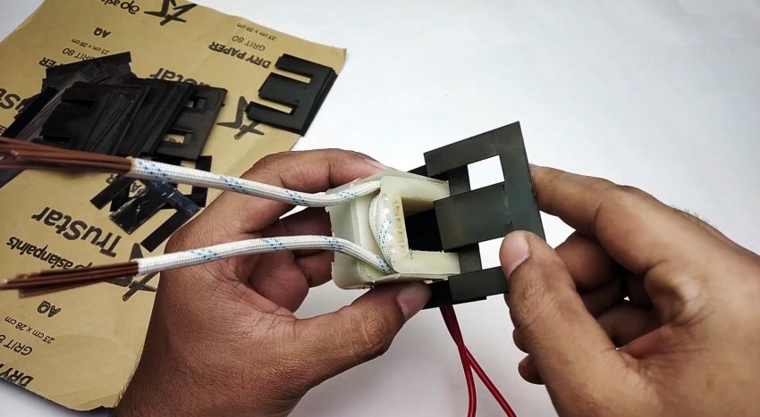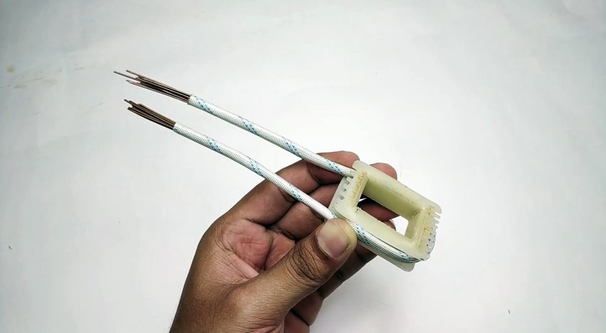 Катушки с обмотками разбираются, снимается первичная обмотка. Вместо неё наматывается три витка полимерного рукава с запасом.