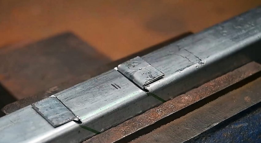 Язычки выгибаются наружу под прямым углом, после чего трубы стыкуются пазами. Жесткость соединения обеспечивается заклепками.
