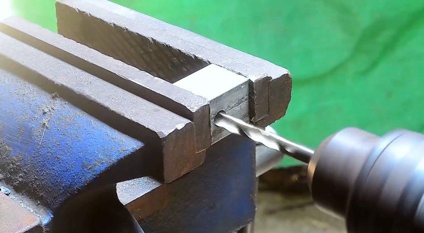 Необходимо подобрать трубку такого диаметра, чтобы она плотно входила внутрь рабочей основной трубы. Из нее нужно вырезать куб. Тот просверливается насквозь, и прикручивается болтом к стенке основной трубы.
