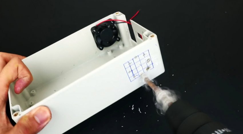 Напротив них устанавливается вентилятор. На противоположной стенке нужны отверстия, чтобы нагнетаемый воздух мог проходить.