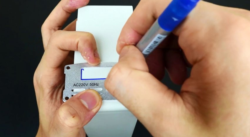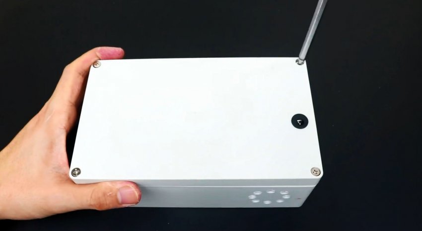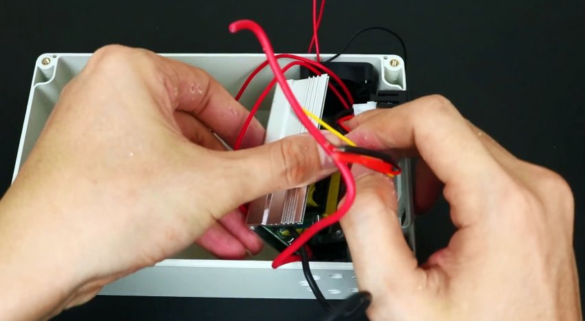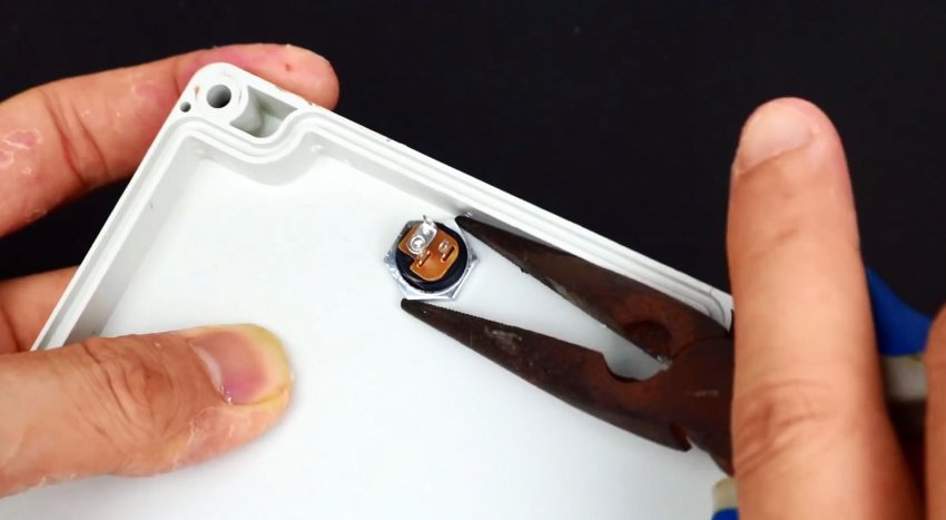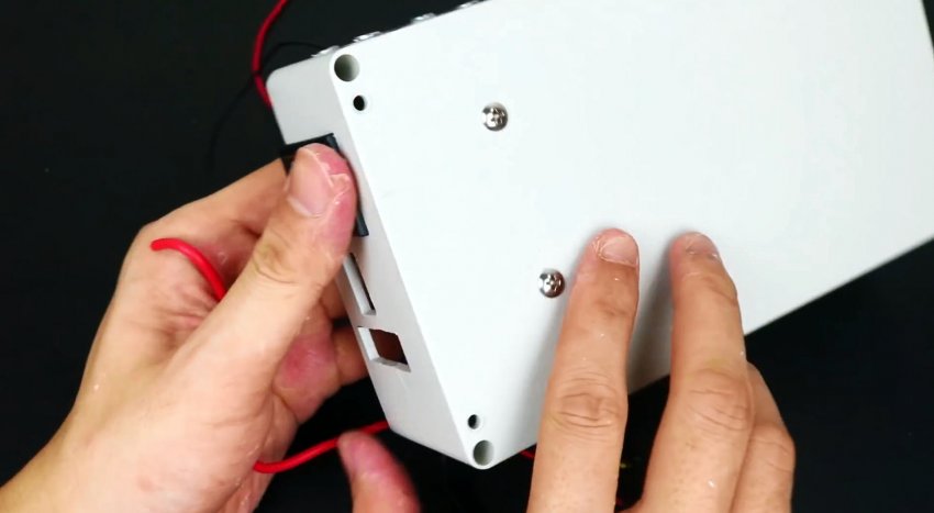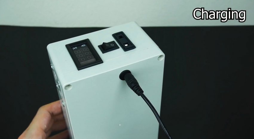 В крышке коробки просверливаете отверстие под разъем зарядного устройства.