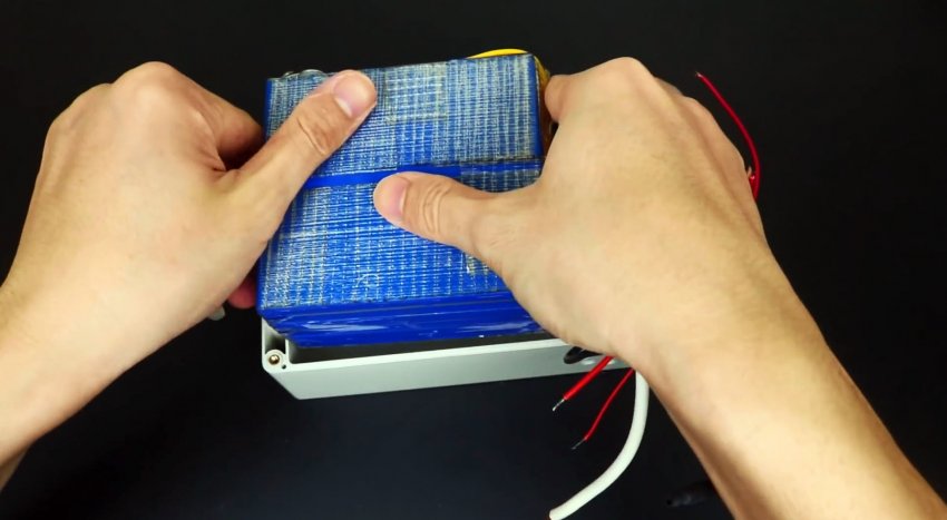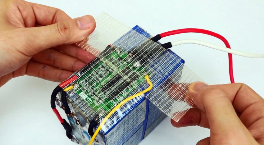 Аккумуляторы сматываются термостойкой изолентой.
