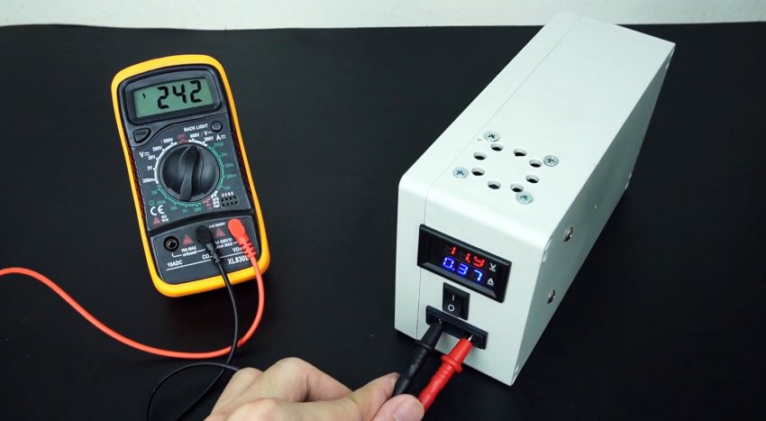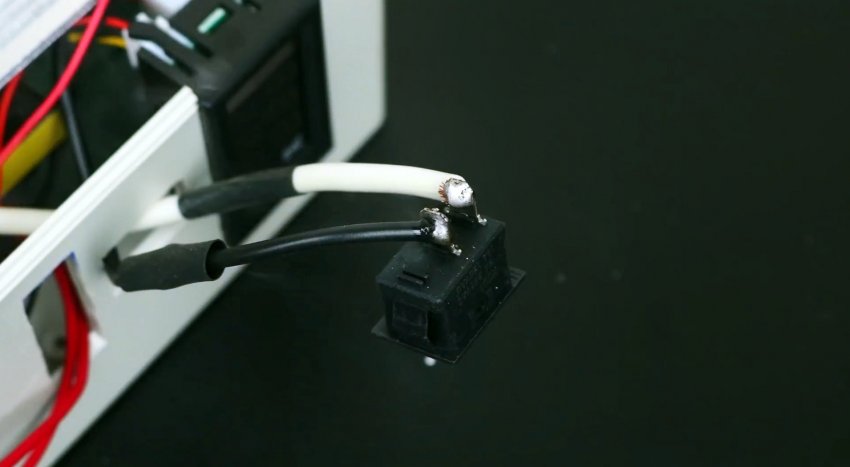 Для удобства провода лучше соединять с помощью клеммных колодок, если позволяет место. Таким образом, получаем внешний источник питания на 220 В, с вольтметром и амперметром для контроля заряда и разряда.