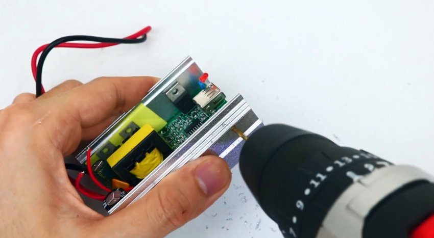 От него нужно отсоединить розетку и подводку. Далее просверлить отверстия в корпусе-радиаторе.