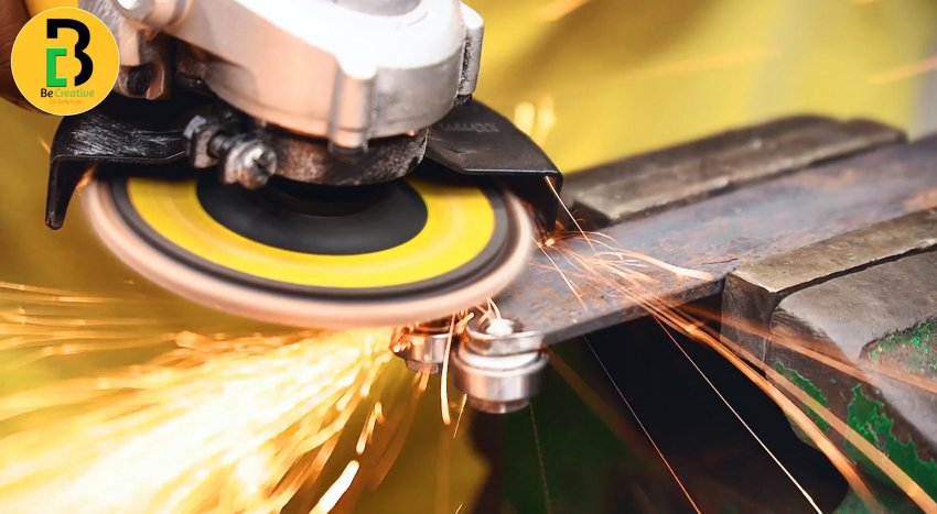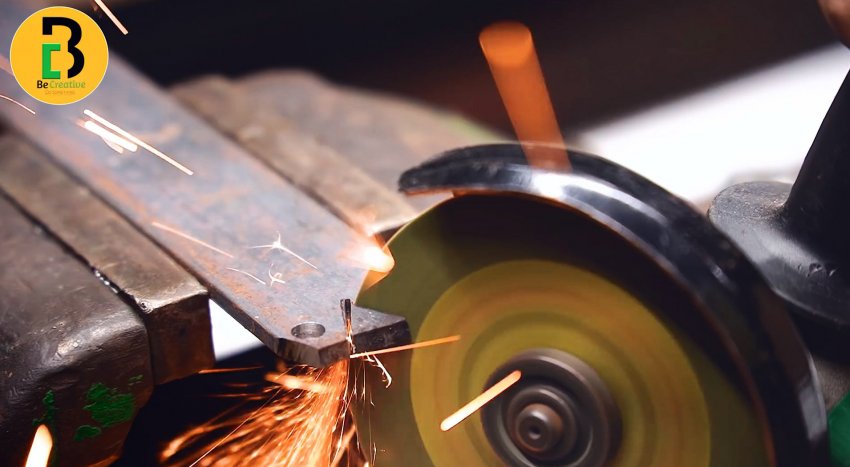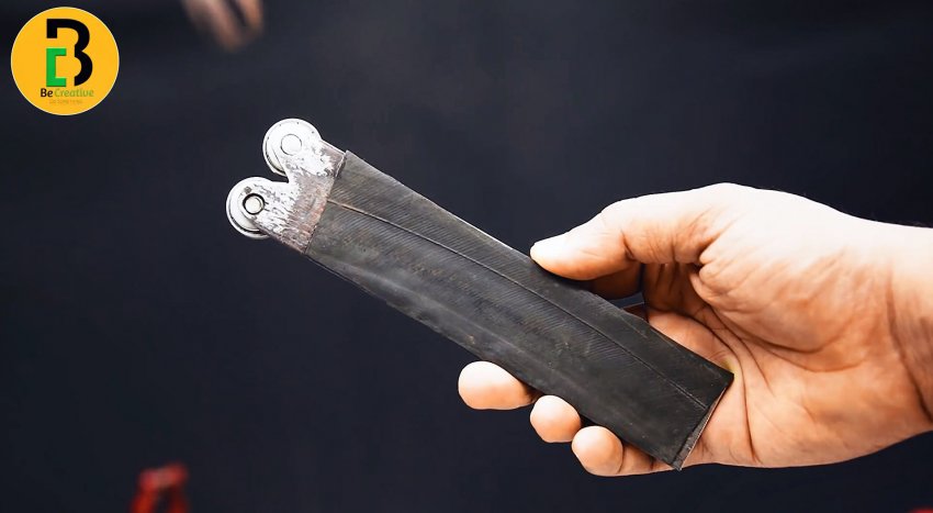 Отрезаем часть полосы с закрепленными подшипниками. Концы болтов с тыльной стороны полосы стачиваем болгаркой до уровня ее поверхности.
