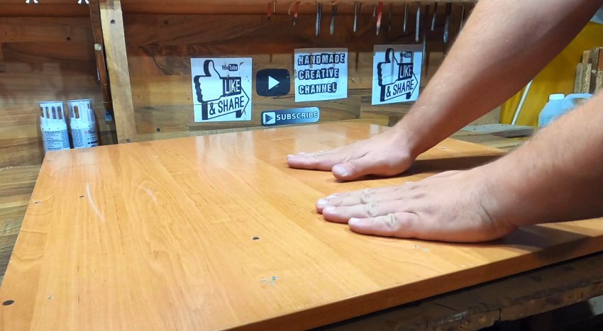 На ровную горизонтальную поверхность укладываем мебельный щит.