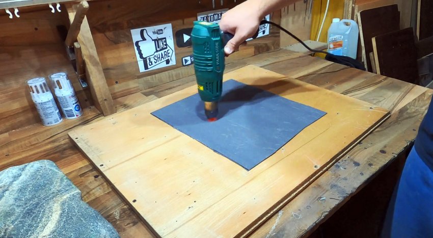 Практически выровненный лист пластика для удаления микронеровностей еще раз равномерно прогреваем по всей поверхности до 70-75 градусов Цельсия.