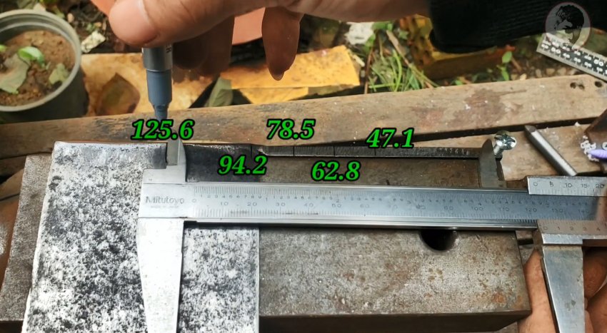 Если мы замерим расстояние между крайними вертикальными линиями после разметки, то они соответственно будут равны для трубы 30?30 мм – 47,1 мм, 40?40 мм – 62,8 мм, 50?50 мм – 78,5 мм, 60?60 мм – 94,2 мм и 40?80 мм – 125,6 мм.
