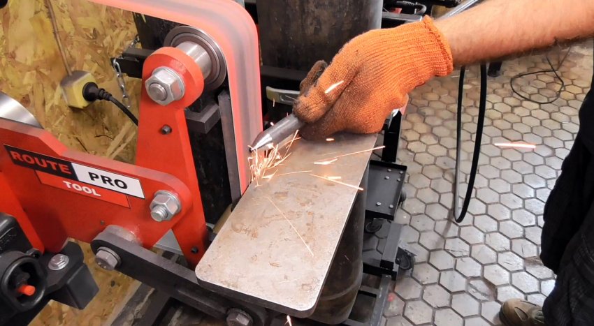 От круглого стального стержня отрезаем несколько заготовок расчетной длины и заостряем с одного конца на гриндере.