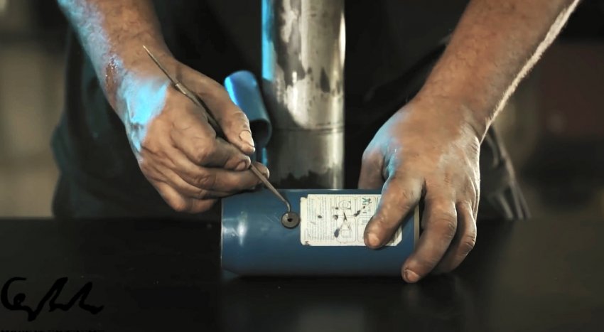 Заливаем в него рабочую жидкость, используя воронку, вытаскиваем из старого корпуса домкрата резиновую пробку и закрываем ей масло-заливное отверстие в верхней части нового масляного резервуара.