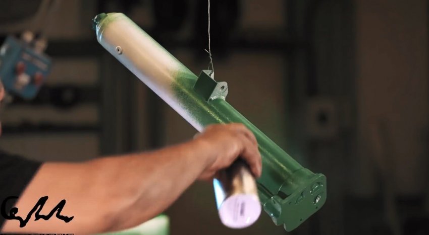 Проверяем работоспособность модернизированного домкрата с увеличенной длиной хода в несколько раз по сравнению со стандартным домкратом, наносим на его поверхность грунт, даем ему подсохнуть и производим окраску.