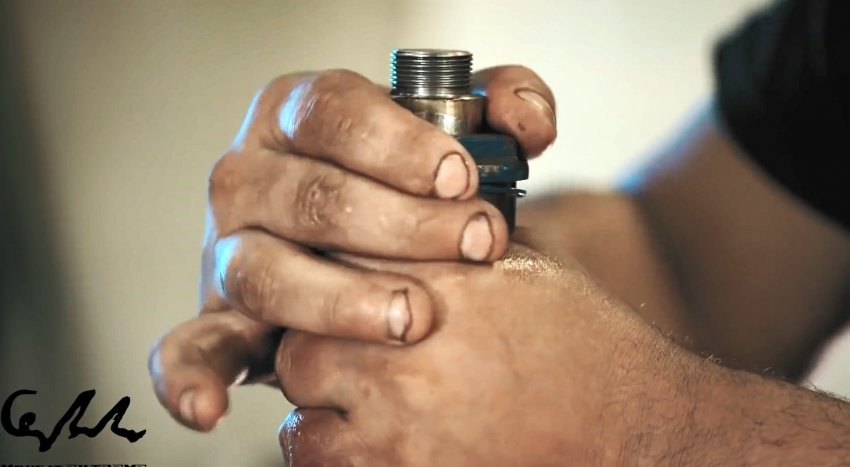 Вставляем удлиненный стержень-поршень в длинный цилиндр, надеваем гайку с уплотнением и затягиваем ее.