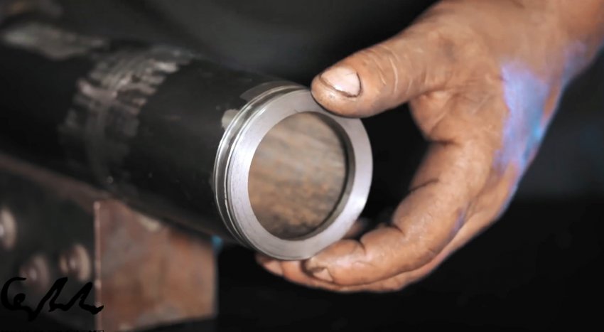 Вновь обрабатываем приваренное кольцо и прилегающую часть трубы, удаляя наплывы металла после сварки, и восстанавливая первоначальную конусность. Другой конец трубы лишь торцуем.