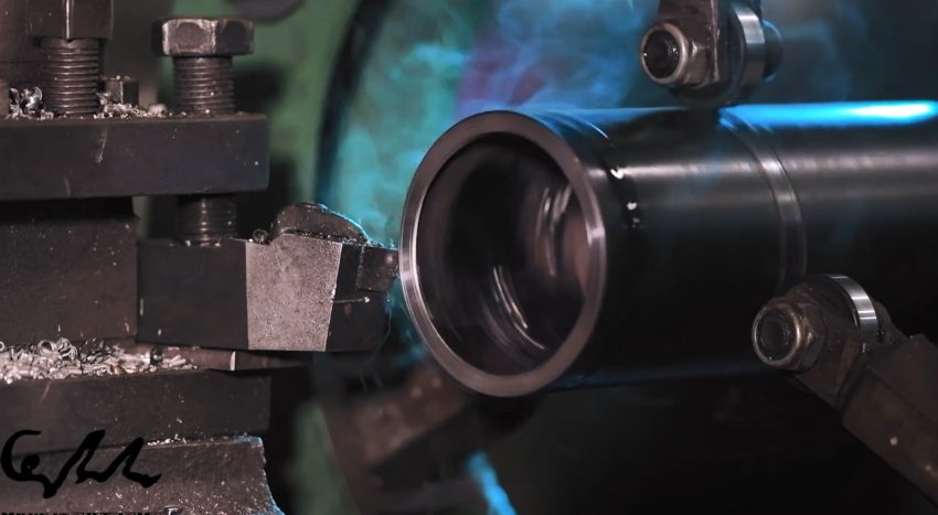 Замеряем на снятом цилиндре профиль резьбы, зажимаем в патрон токарного станка длинную трубу того же диаметра, что и старый цилиндр, протачиваем ее с обеих концов до нужных размеров и формы, и нарезаем измеренный профиль резьбы.
