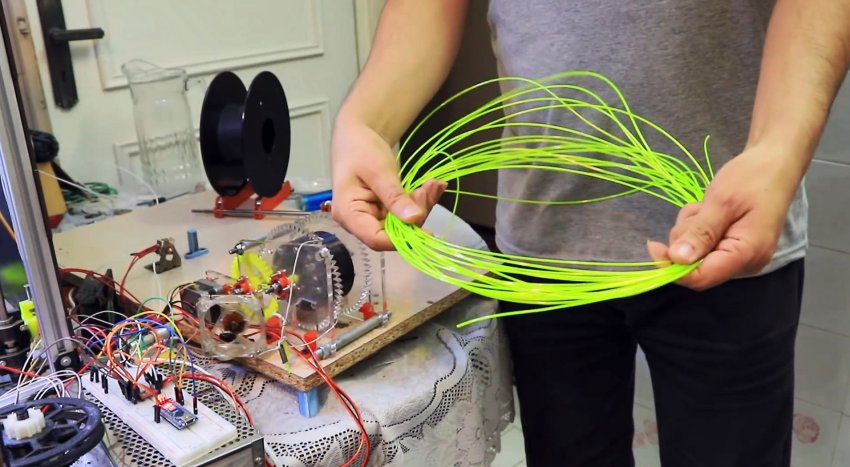 Все необходимое для производства оборудование можно сделать кустарным способом. К нему нет никаких особых требований кроме возможности регулировки. У нагревателя это соответственно температура, а у намоточного механизма скорость вращения катушки. В итоге можно буквально из мусора получать качественный филамент.