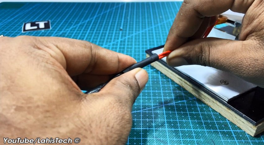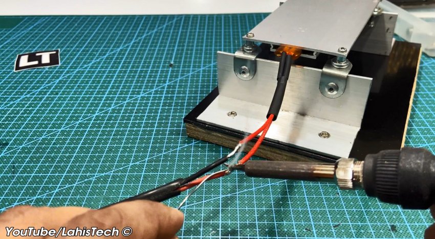 К электрическим выводам припаивают питающий провод.