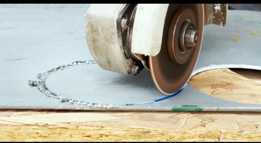 Для второго патрубка заглушку вырезаем из пластикового листа, обводя его контур по наружной образующей.