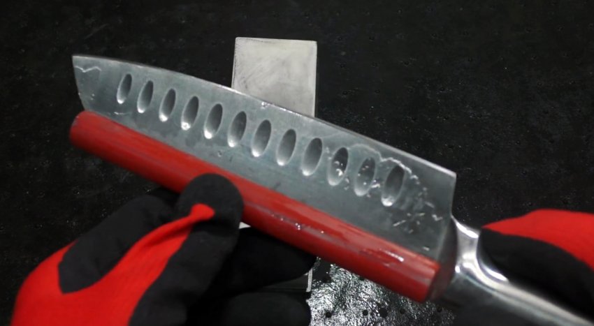 Затем трубка надевается на обух тупого ножа, который требуется заточить.