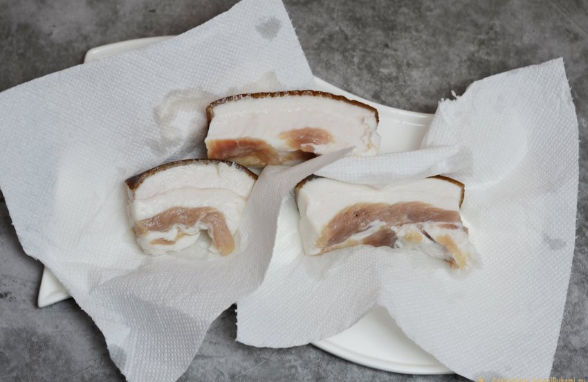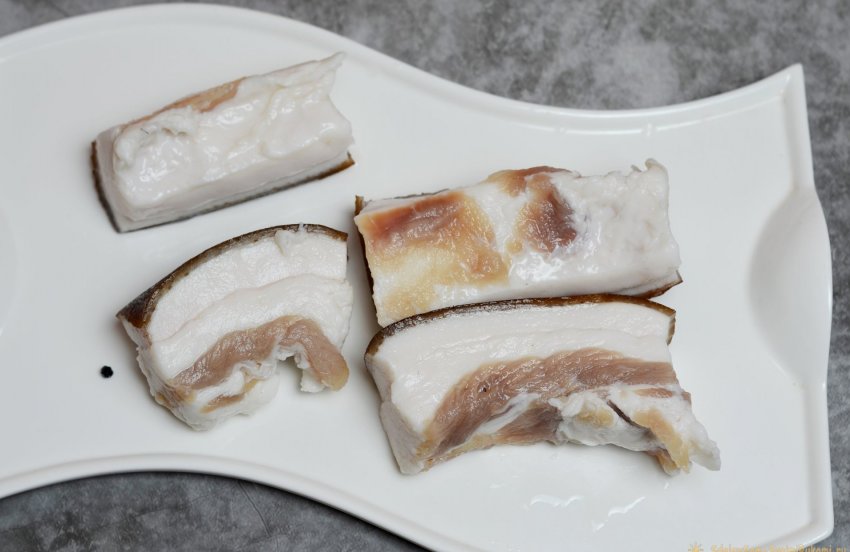 10. Поскольку сейчас модно максимально снижать соленость любых продуктов, каждый кусочек сала минуту-другую держат под проточной водой.