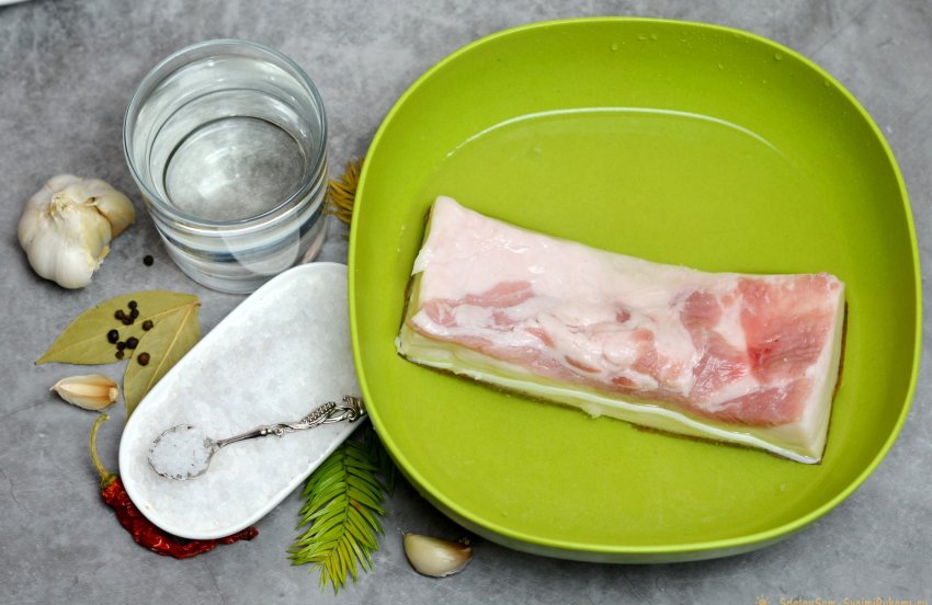 2. Сало моют водой комнатной температуры, шкурку слегка скоблят ножом.
