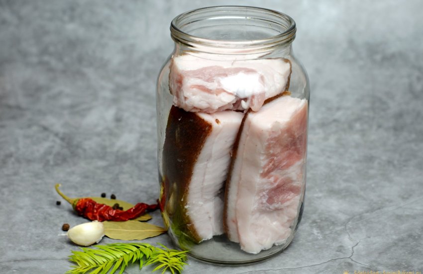 1. В рассоле соленый вкус распределяется равномерно по всему куску сала. При сухом посоле края сала будут более солеными, чем серединка. Солить в банках нужно небольшие куски сала с тонкой обработанной шкуркой и мясными вставочками.