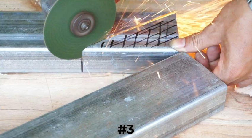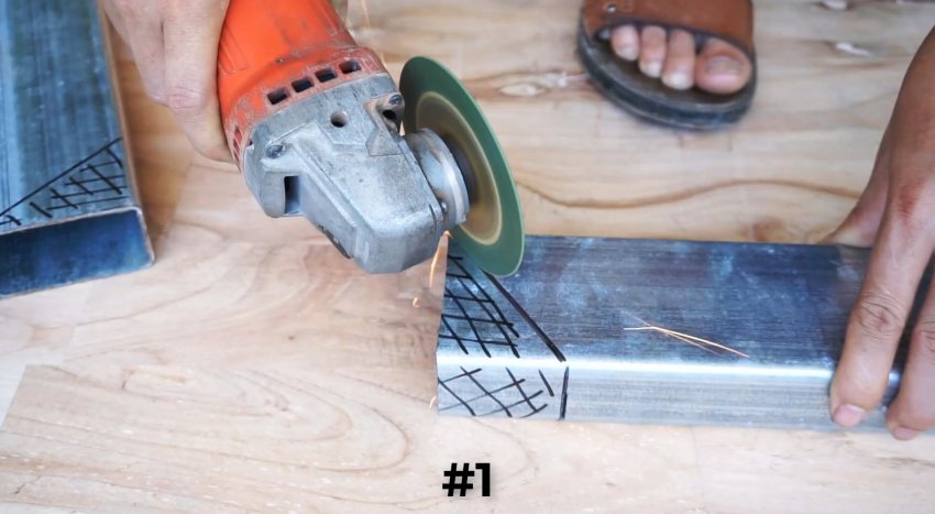 Отрезаем по полученной линии с помощью болгарки концы элементов и соединяем их по линии реза.