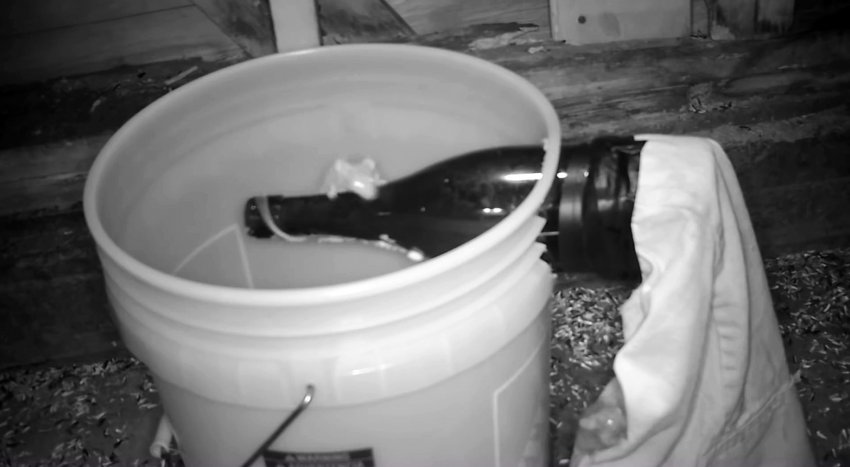 Мышь, учуяв запах приманки, поднимаются по ткани на бутылку. Затем поскользнувшись на узком скользком горлышке упадет в ведро. Там грызуны просидят до утра, пока вы их не уберете. Улов в зависимости от степени вашей гуманности можно отпустить в поле или же уничтожить.