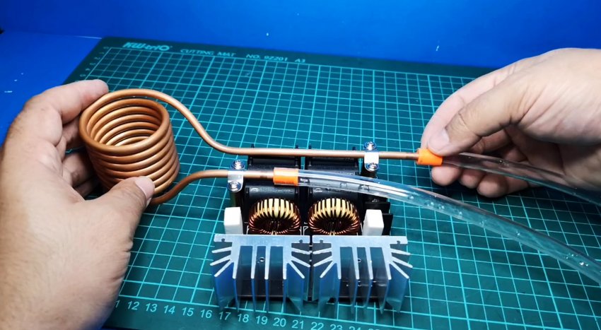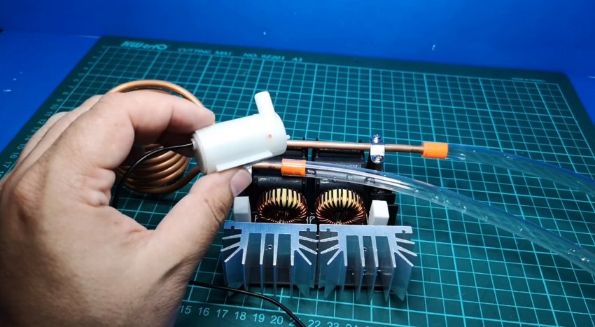 Но если вы хотите «выжать» из нагревателя максимальную мощность, то придется доработать систему охлаждения. Нужно пустить по трубке катушки обычную воду.