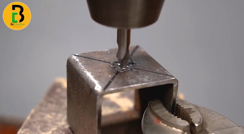 По центру ее необходимо просверлить сверлом 10 мм, сделав отверстия в двух стенках.