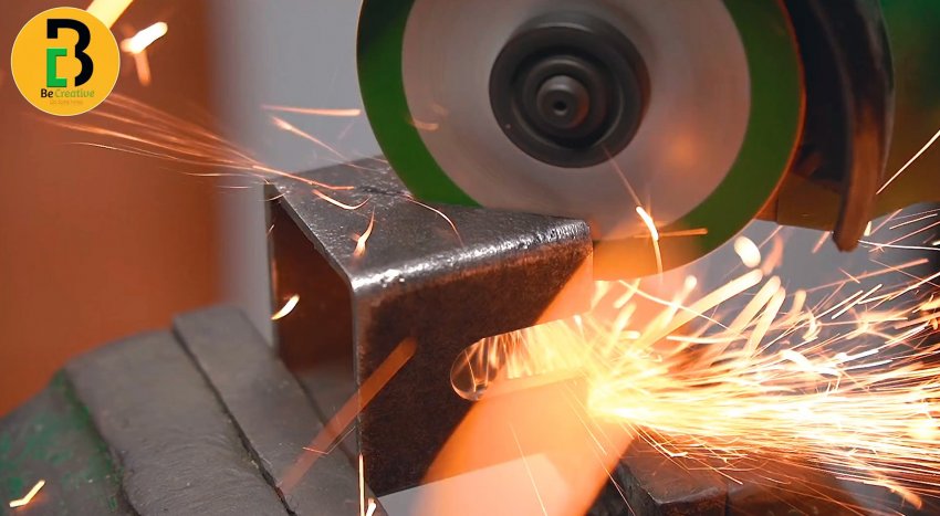 На оставшихся целыми боковых стенках заготовки необходимо вырезать часть металла под треугольник. Направление вырезов должно соответствовать направлению пропила на первой стороне.