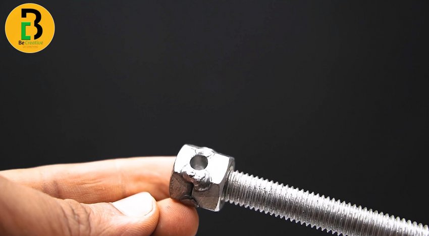 На длинный болт накручивается до упора в головку гайка. Затем она приваривается. Увеличенная головка просверливается сбоку. Край болта затачивается.