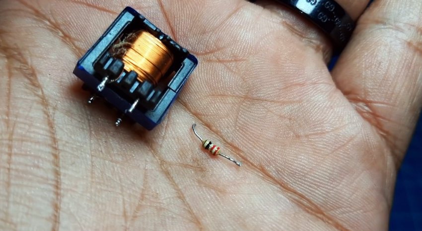 Из нее извлекается ферритовый трансформатор и резистор на 22 Ом.