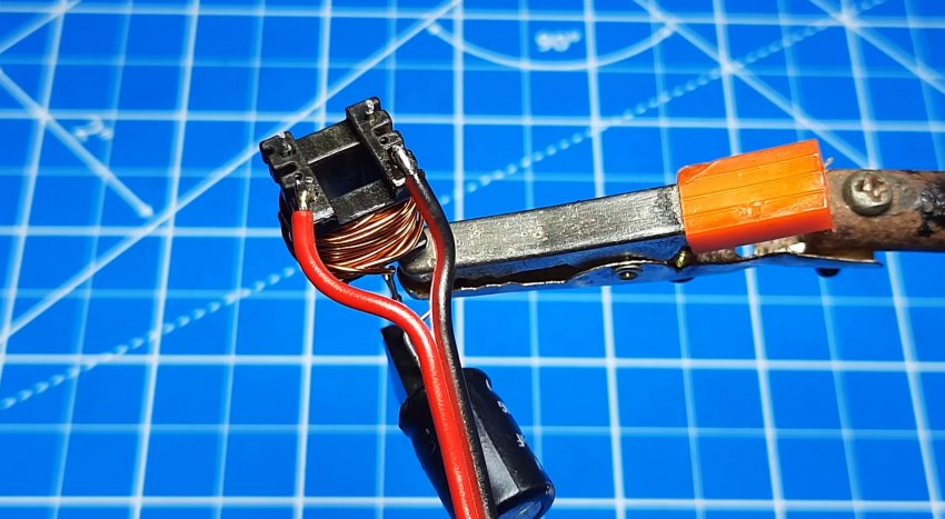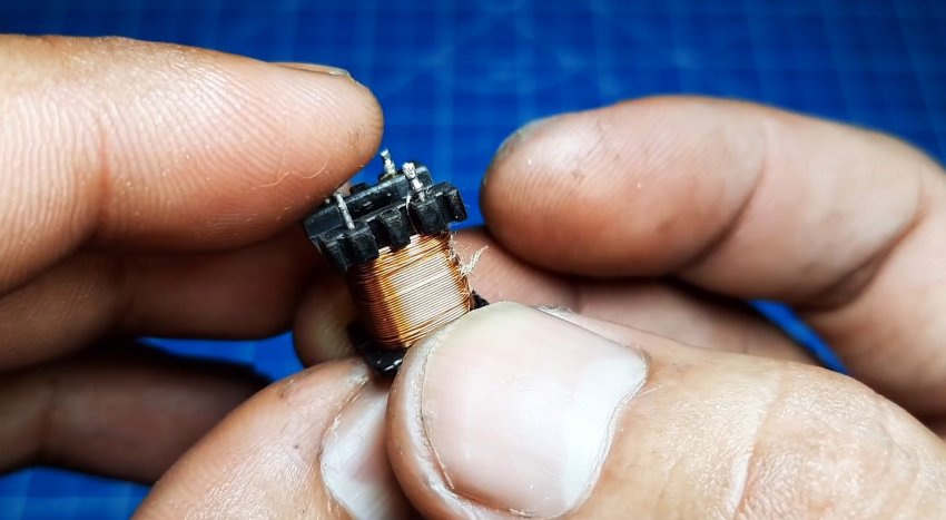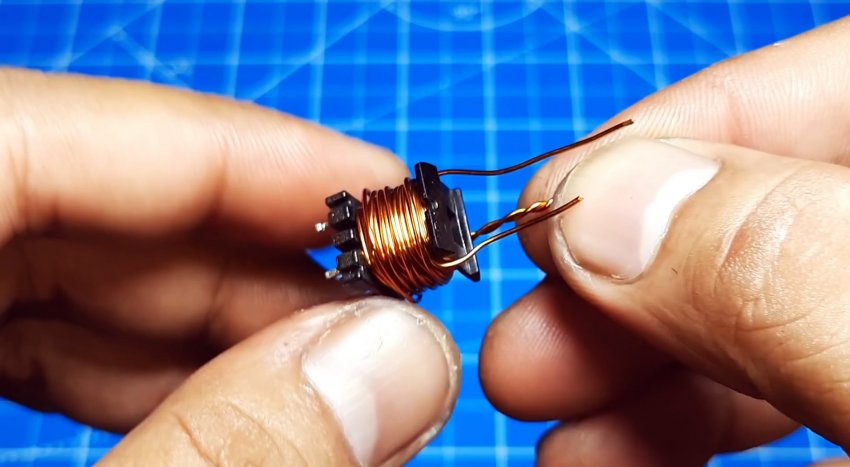 У трансформатора нужно удалить сердечник. Для устройства потребуется только катушка с обмоткой.