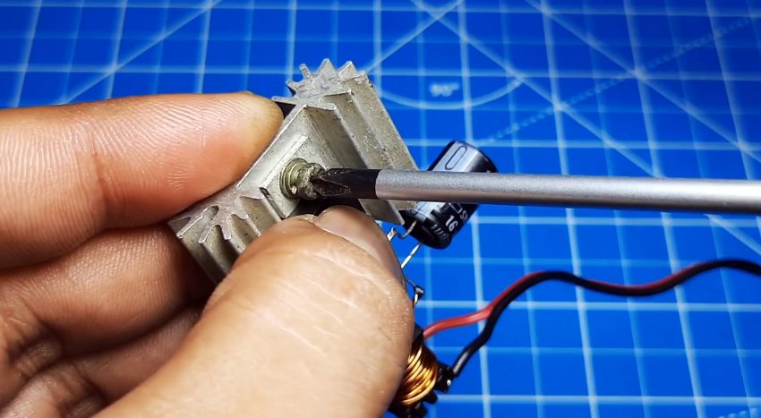 Для охлаждения схемы следует подключить к транзистору алюминиевый радиатор.