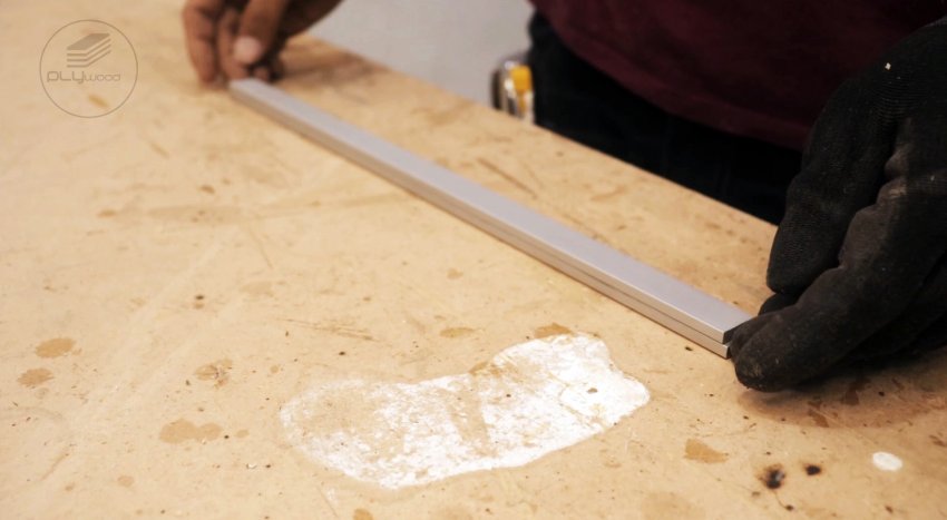 Укладываем на них направляющую шину так, чтобы совпали торцы, а также продольные оси прорези и алюминиевых отрезков.